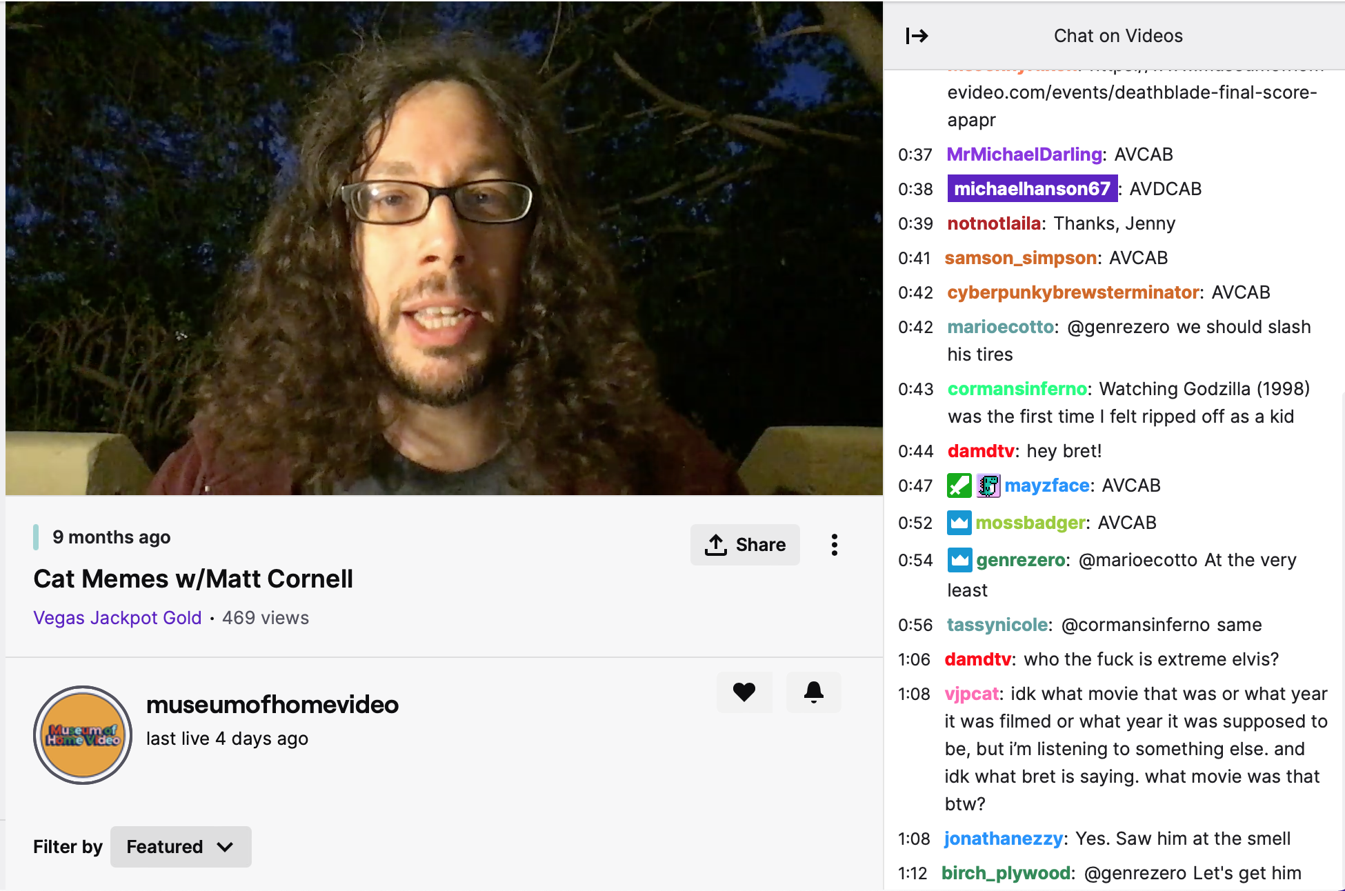 Bret Berg has described the chat on Museum of Home Video as a central feature. MOHV has a loyal following of familiar names who joke and support each other in nearly every broadcast. It was a bit unusual, as many of the streams outside of pirate TV have a shorter attention span. The movie and TV crowd is more likely to stay for whole segments on Twitch than performing streams. Also, many of the chat members who participate on MOHV do so regularly even though the percentage of those who watch and participate seems to be fairly low. During the broadcasts Bret will respond to questions about the segments and laugh when something strikes his funny bone. The moderator on MOHV, Ms. Jenny Nixon fosters conversation, humor, and friendly interaction throughout the broadcast. After viewing many hours of MOHV, I’m struck that there is no trolling, no mean-spirited banter at all. For anything on-line with a few hundred participants that seems like an impressive feat. Positive vibes everywhere on a Twitch seems like a real public service during the gloom of the pandemic. Especially because the gaming streams are full of weird dude energy, competitive spite, and outright vitriol.