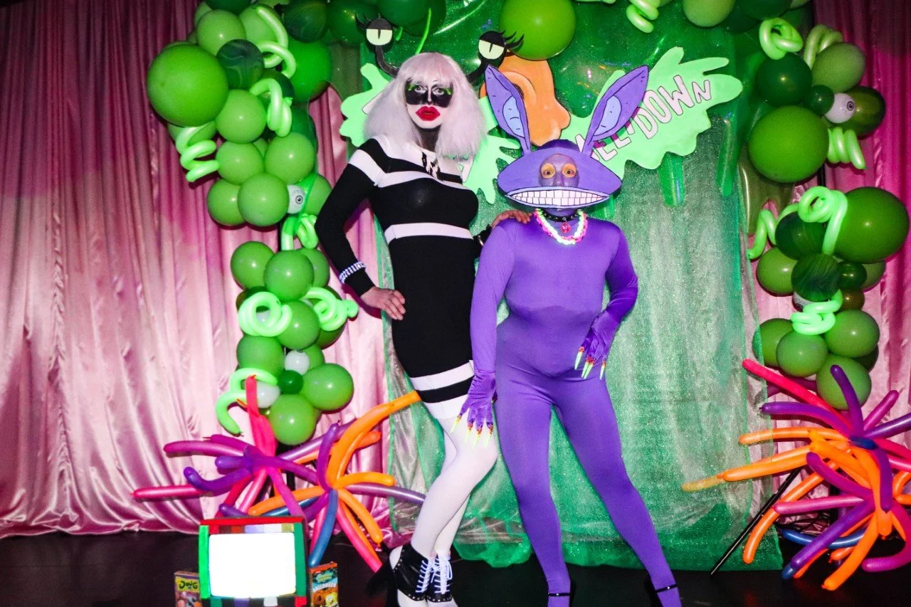Piranha in black stripes and Franzia as a purple zoomorphic bunny. (photo: Emily Ophidian)